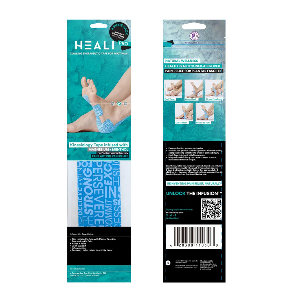 Synthetic Silk Strips for relieving plantar fasciitis pain. Help with temporary support during times of discomfort. Tape is infused with Menthol and Magnesium to help reduce inflammation and relieve pain. Magnesium deficiency can contribute to cramping and spams associated with plantar fasciitis.